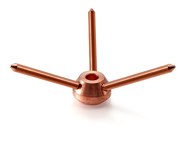 Multipoint mostly used with taper pointed air rod. Multipoint installed at highest area of structure or building. Multipoint are mostly made of copper. Also available in brass & gun metal. Multipoint also connect taper pointed air rod with elevation rod.